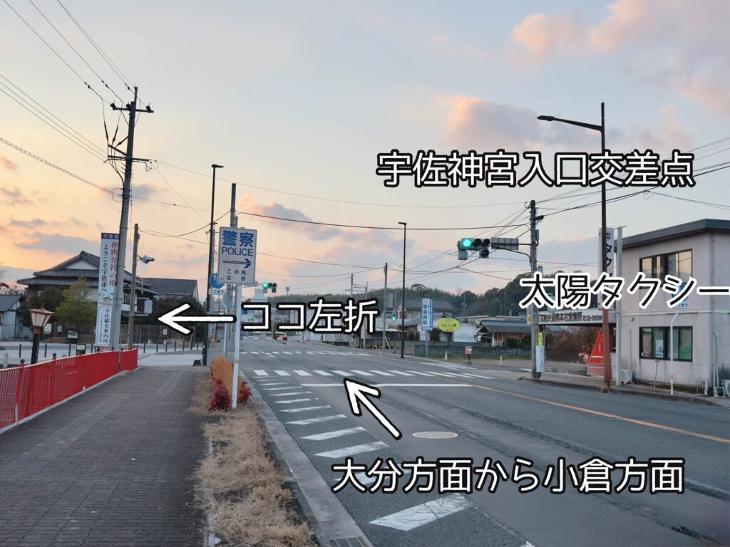 国道10号線「宇佐神宮入口」交差点を左折